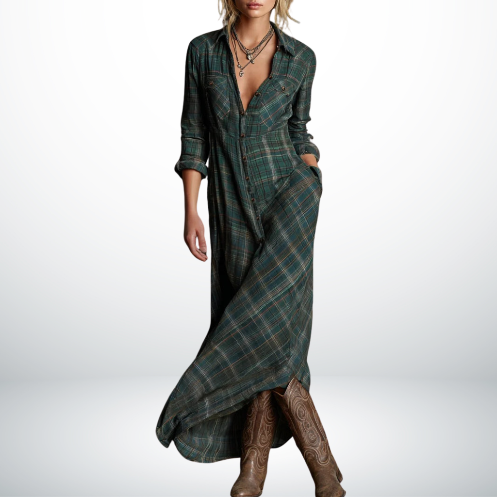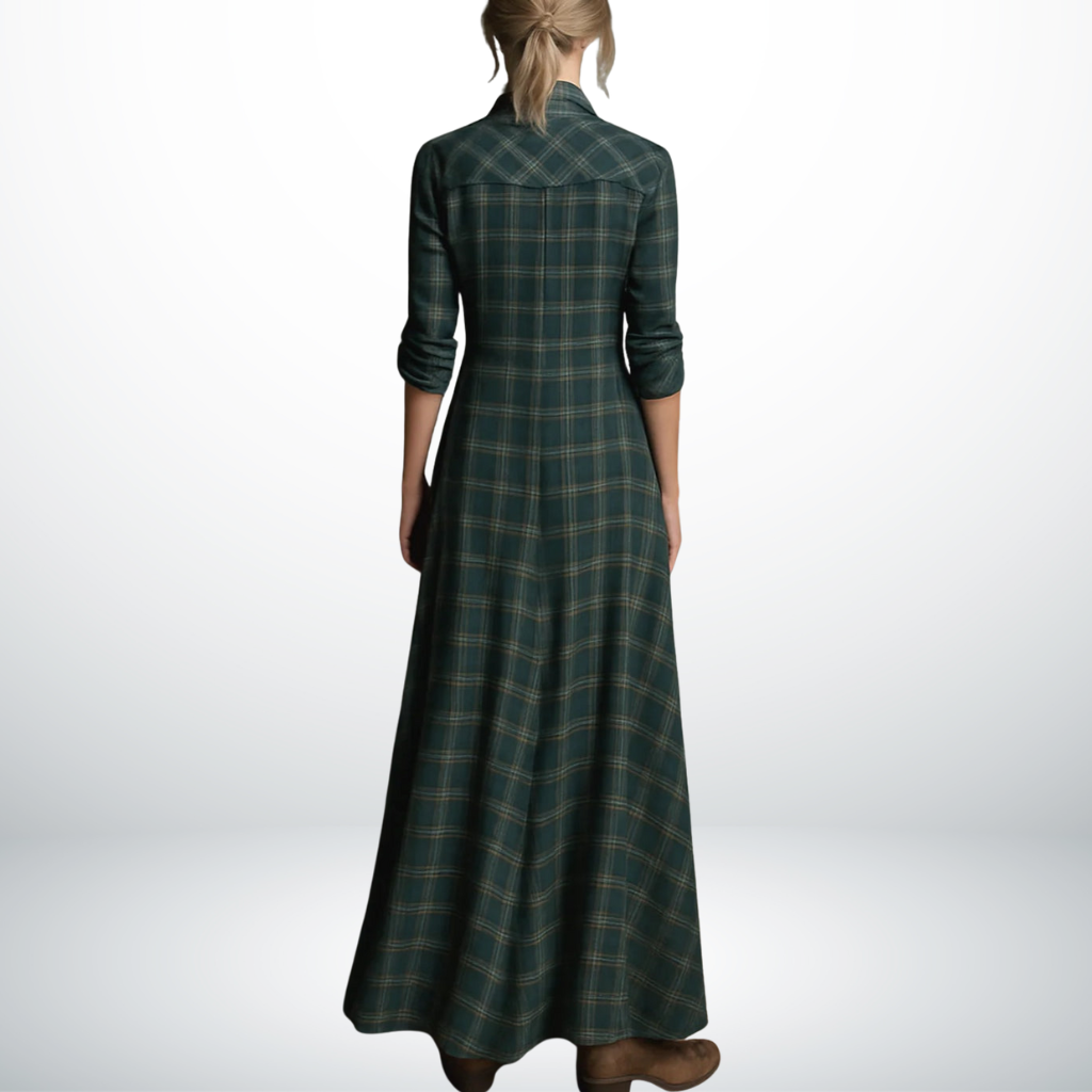 Claudia™ – Tijdloze Geruite Lange Jurk