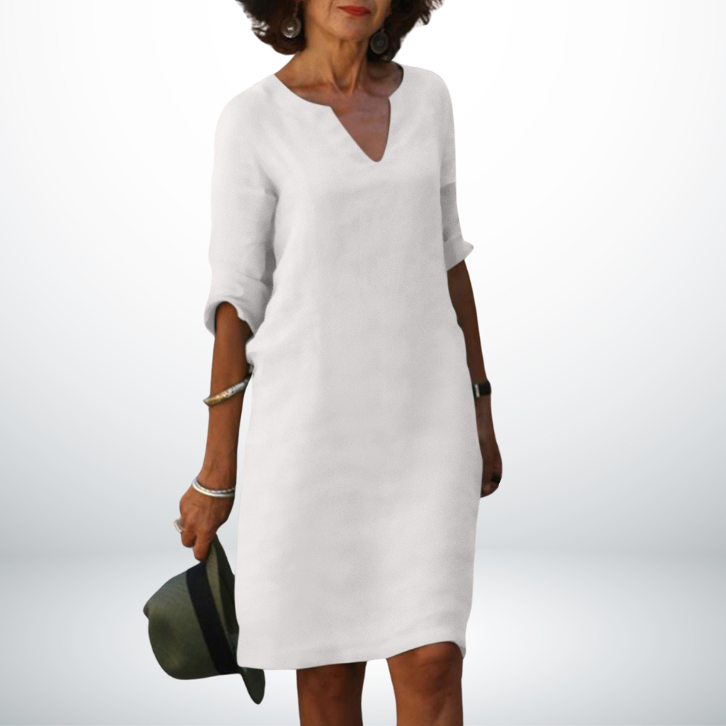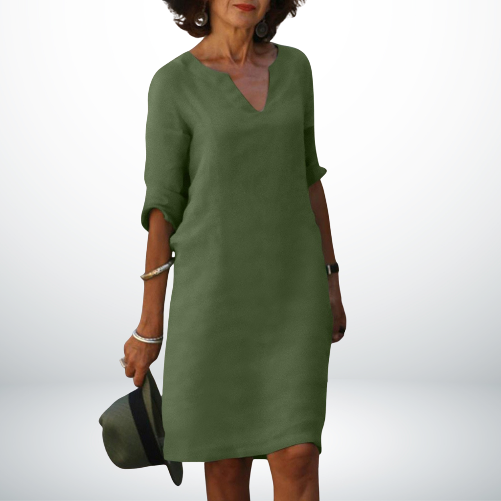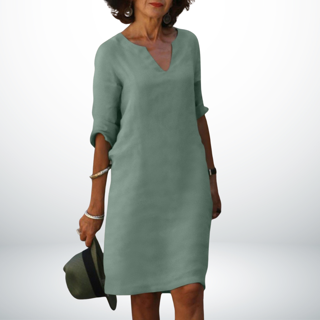 Eulalior™ – Tijdloze Elegante Maxi Jurk is de perfecte metgezel voor momenten waarop u moeiteloos stijlvol wilt zijn. De vloeiende pasvorm en klassieke snit geven u een verfijnde uitstraling, terwijl de soepele stof heerlijk comfortabel aanvoelt. Deze jurk benadrukt uw natuurlijke elegantie en laat u stralen bij elke gelegenheid, van een zomerse wandeling tot een chic diner.