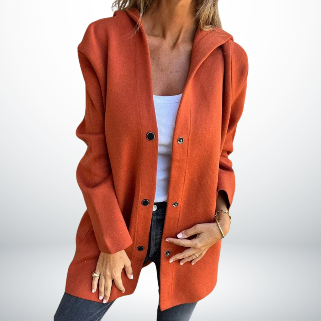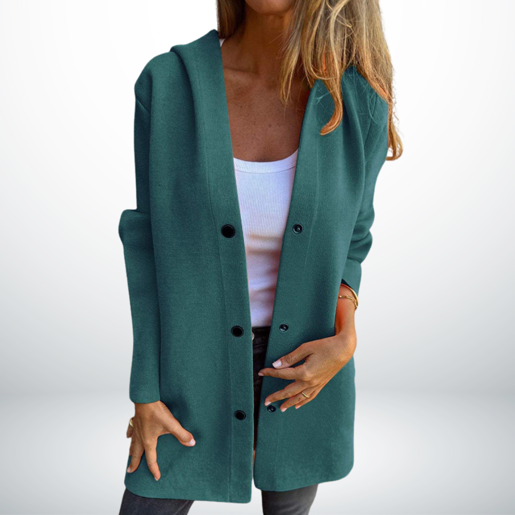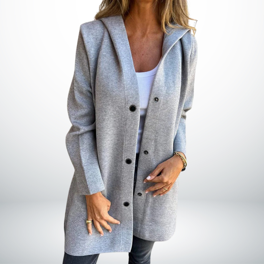 Een jas die comfort en stijl moeiteloos combineert. De Femke™ is ontworpen voor de moderne vrouw die zich graag vrij beweegt, maar er altijd verzorgd uit wil zien. Met zijn flatterende pasvorm en praktische capuchon is dit een jas die je keer op keer met vertrouwen aantrekt – of je nu een wandeling maakt of een casual afspraak hebt.