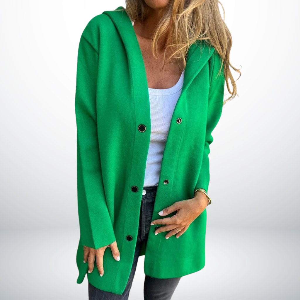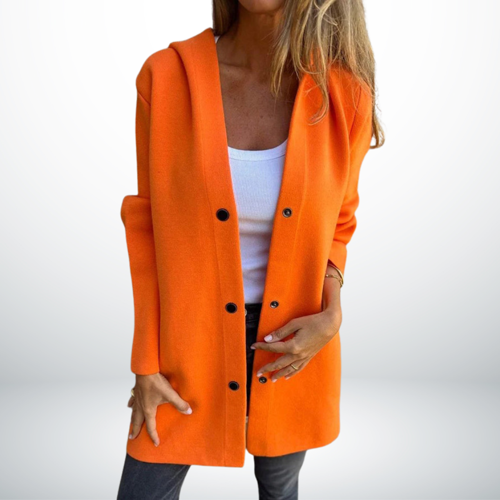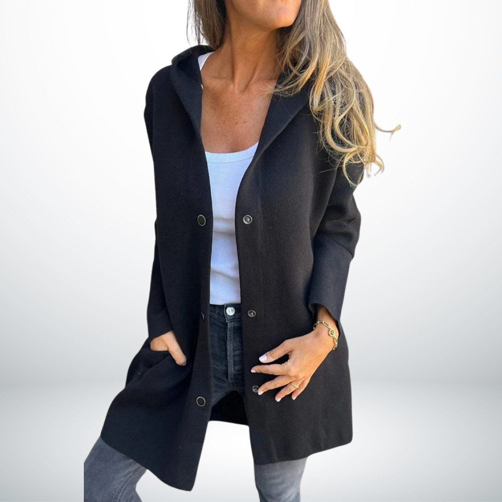 Een jas die comfort en stijl moeiteloos combineert. De Femke™ is ontworpen voor de moderne vrouw die zich graag vrij beweegt, maar er altijd verzorgd uit wil zien. Met zijn flatterende pasvorm en praktische capuchon is dit een jas die je keer op keer met vertrouwen aantrekt – of je nu een wandeling maakt of een casual afspraak hebt.