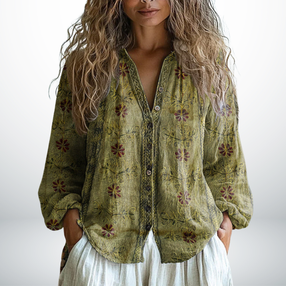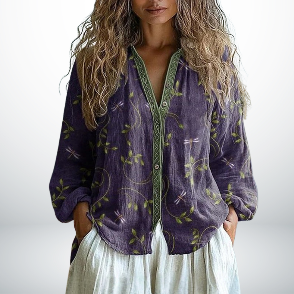 Een blouse die tijdloze charme combineert met moderne elegantie. De zachte pasvorm en het verfijnde bladerenprint maken dit stuk ideaal voor de vrouw die zich comfortabel én stijlvol wil voelen – op kantoor, tijdens een diner of gewoon in haar vrije tijd. Met Grace™ kies je voor een look die zelfvertrouwen en klasse uitstraalt, zonder in te leveren op draaggemak.