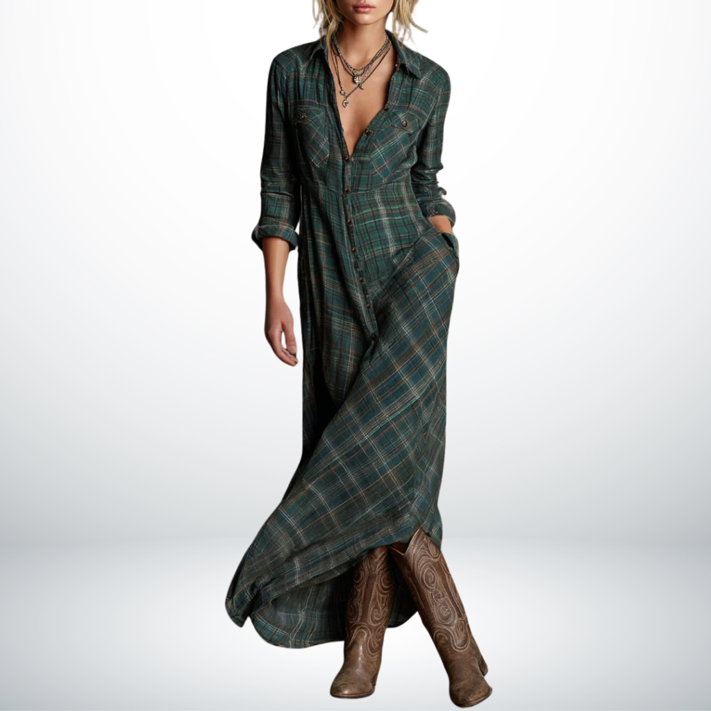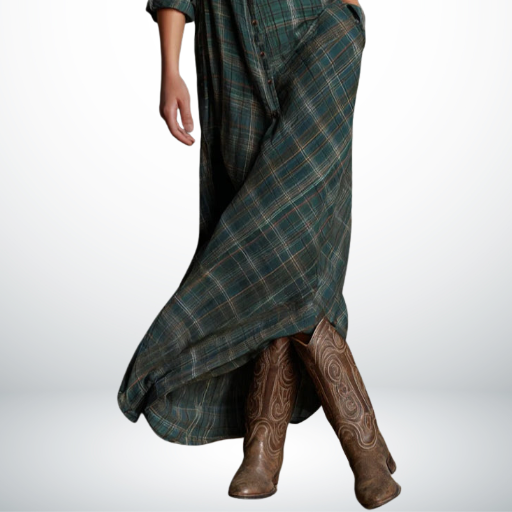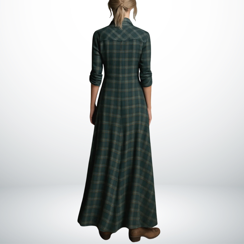 De Soraya™ – Lang Geruit Groen Jurk straalt tijdloze elegantie uit met een vleugje modern gemak. De verfijnde ruitprint en zachte stof maken dit de perfecte jurk voor vrouwen die comfort willen combineren met stijl. Ideaal voor zowel een ontspannen dag als een diner met vrienden – altijd moeiteloos chic.