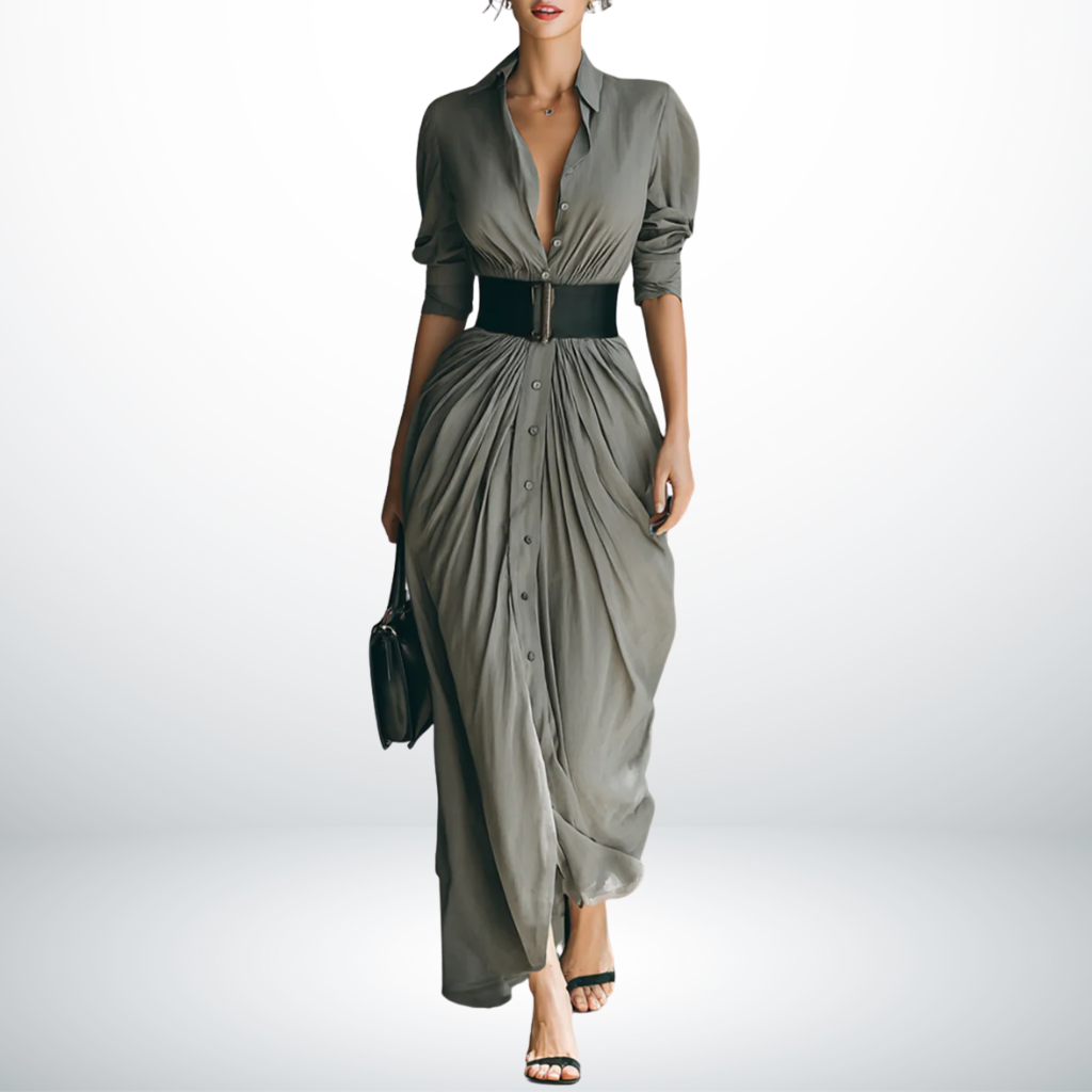 Een jurk die stijl en comfort moeiteloos combineert. De Susana™ is ontworpen voor de vrouw die houdt van een elegante uitstraling zonder in te leveren op gemak. De flatterende lange snit en de verfijnde reverskraag zorgen voor een tijdloze look waarin u zich zowel zelfverzekerd als comfortabel voelt – perfect voor elke gelegenheid.