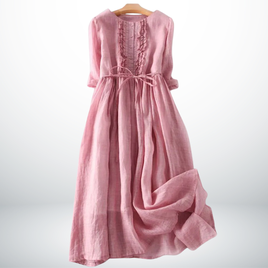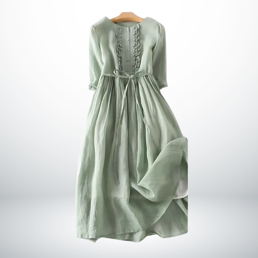 Arya™ – Retro Jurk met Ronde Hals en Strikceintuur