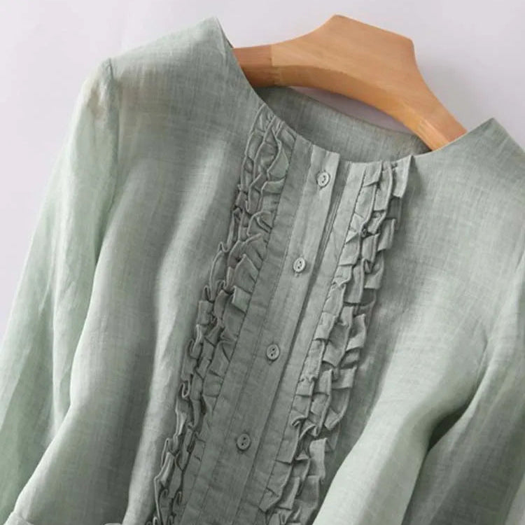 - Flatterende Pasvorm – Het strikceintuur accentueert de taille en creëert een sierlijk silhouet.