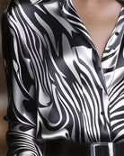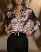 De glanzende satijnstof en het moderne patroon geven je outfit direct een verzorgde, stijlvolle look. Combineer haar met een nette broek of rok voor een elegante uitstraling, of draag haar losjes over jeans voor een verfijnde casual look. -