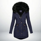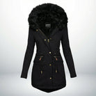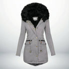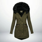 - Rijke faux-fur kraag — geeft een luxueuze uitstraling en zorgt voor extra warmte rondom de hals.