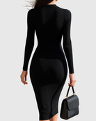Monique™ – Elegante geribde gebreide midi-jurk met frontrits