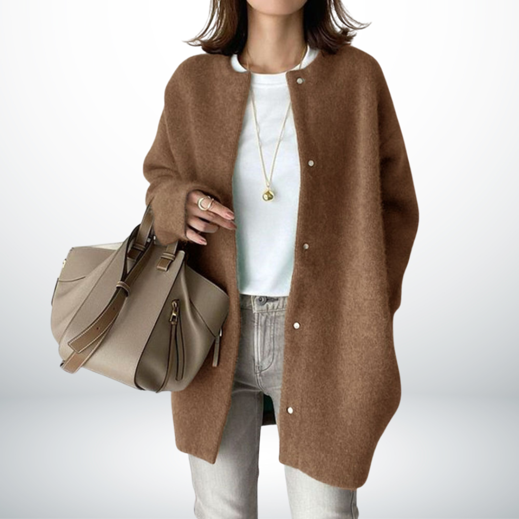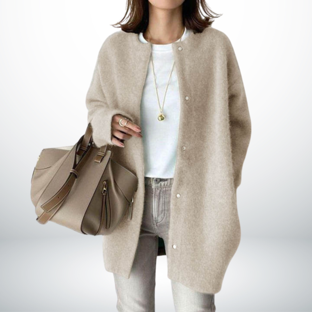 De Nicole™ – Comfortabele Overgangsjas is ontworpen voor de vrouw die moeiteloos stijl en comfort wil combineren. De zachte stof en verfijnde pasvorm geven u een elegante uitstraling, terwijl het draaggemak ervoor zorgt dat u zich de hele dag prettig voelt. Perfect voor zowel ontspannen momenten thuis als stijlvolle gelegenheden buitenshuis.