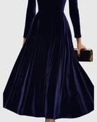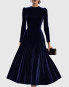 Sibella™ – Elegante marineblauwe midi-jurk met lange mouwen