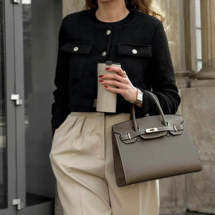 De Silke straalt tijdloze elegantie uit en combineert verfijnde stijl met praktische functionaliteit. Deze handtas is zorgvuldig vervaardigd uit hoogwaardig leer en voorzien van een sierlijke draaisluiting die haar een luxueuze uitstraling geeft. Dankzij het doordachte ontwerp blijft alles wat je nodig hebt overzichtelijk en stijlvol binnen handbereik.