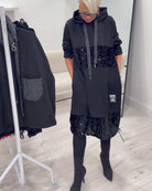 De Zara™ – Hoodie-Jurk combineert het comfort van een hoodie met de elegante uitstraling van subtiele glans. Dankzij de zachte, warme stof, het moderne oversized model en de opvallende glitterlaag in het midden is dit een echte blikvanger die toch heerlijk comfortabel blijft. Ideaal voor dagen waarop je gemak en stijl moeiteloos wilt combineren.