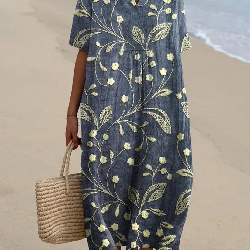 Laat je omarmen door een tijdloos ontwerp dat soepel om je lichaam valt en je figuur mooi uit laat komen. Dankzij de losse pasvorm rondom de buik voel je je niet alleen stijlvol, maar ook op je gemak. Deze jurk is perfect voor elke dag én voor speciale gelegenheden – zonder dat je hoeft in te leveren op comfort.