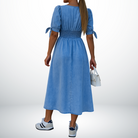 Een jurk die moeiteloos stijl en comfort combineert. De Alva™ denim jurk met knopen is ontworpen voor vrouwen die zich op elke leeftijd zelfverzekerd en elegant willen voelen. Met zijn flatterende pasvorm en tijdloze uitstraling is dit een kledingstuk dat u steeds opnieuw met plezier zult dragen.