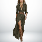 Carmen™ – Linnen Maxi Jurk met Omgeslagen Kraag