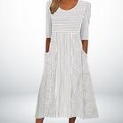 De Evie™ – Gestreepte Zomerjurk is ontworpen voor vrouwen die comfort en stijl willen combineren. Met haar speelse mix van verticale en horizontale strepen, flatterende A-lijn model en handige zakken, is deze jurk ideaal voor zonnige dagen, relaxte wandelingen of een dagje uit. Dankzij het zachte, ademende materiaal voelt deze jurk licht aan op de huid – perfect voor warme temperaturen. En het mooiste? Je straalt pure zelfverzekerdheid uit zodra je haar aantrekt.