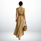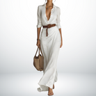 Ontdek tijdloze elegantie met de Felicia™ jurk – een lange, vloeiende jurk die stijl en comfort moeiteloos combineert. De reverskraag en het ceintuur geven een verfijnde uitstraling en zorgen voor een flatterende pasvorm die perfect is voor de moderne vrouw van 40+. Een jurk die je zowel zelfvertrouwen als gemak biedt, of je nu een speciale gelegenheid hebt of gewoon stijlvol de dag door wilt.
