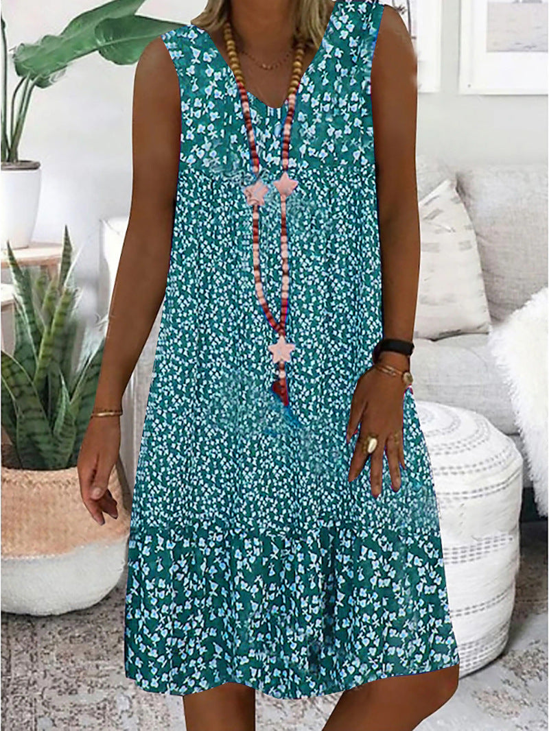 Luchtig en ademend ontwerp: Dankzij het mouwloze design en de soepele stof is deze jurk heerlijk koel, zelfs op de warmste dagen. Je blijft comfortabel én stijlvol.