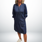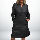 De Judith™ – Elegante is ontworpen voor de vrouw die stijl en gemak moeiteloos wil combineren. Met zijn vloeiende snit en geraffineerde uitstraling biedt deze jurk de perfecte balans tussen comfort en elegantie. Ideaal voor drukke dagen waarop u er verzorgd én zelfverzekerd uit wilt zien.