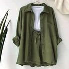 Ontdek de moeiteloze elegantie van de Linn™ – Comfortabel Tweedelig Setje. Dit stijlvolle ensemble combineert een luchtige top met een perfect bijpassende broek, ideaal voor ontspannen dagen waarop je er toch verzorgd uit wilt zien. Voor de vrouw die comfort en stijl in één beweging omarmt.