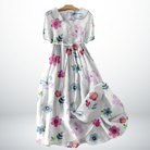 Laat je omhullen door de tijdloze charme van Lyric™ – Modieuze Bloemenjurk met Taillelint. Deze jurk combineert een flatterende A-lijn met een subtiele strik in de taille voor een vrouwelijk silhouet dat je figuur mooi uitkomt. De luchtige stof en sierlijke bloemenprint maken haar tot een veelzijdige keuze, zowel voor een zonnige dag in de stad als voor een stijlvolle lunchafspraak.