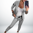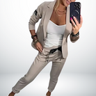 De Madeleine™ set bestaat uit een stijlvolle blazer met bijpassende pantalon en is ontworpen voor de vrouw die graag zelfverzekerd en comfortabel voor de dag komt. De combinatie van een elegante snit en hoogwaardige stof zorgt voor een verfijnde look die zowel professioneel als vrouwelijk oogt. Perfect voor werk, formele gelegenheden of momenten waarop je indruk wilt maken.