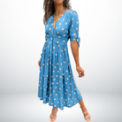 - Flatterende Pasvorm – De subtiele taillering en zwierige rok geven een elegant silhouet dat elke lichaamsvorm omarmt.